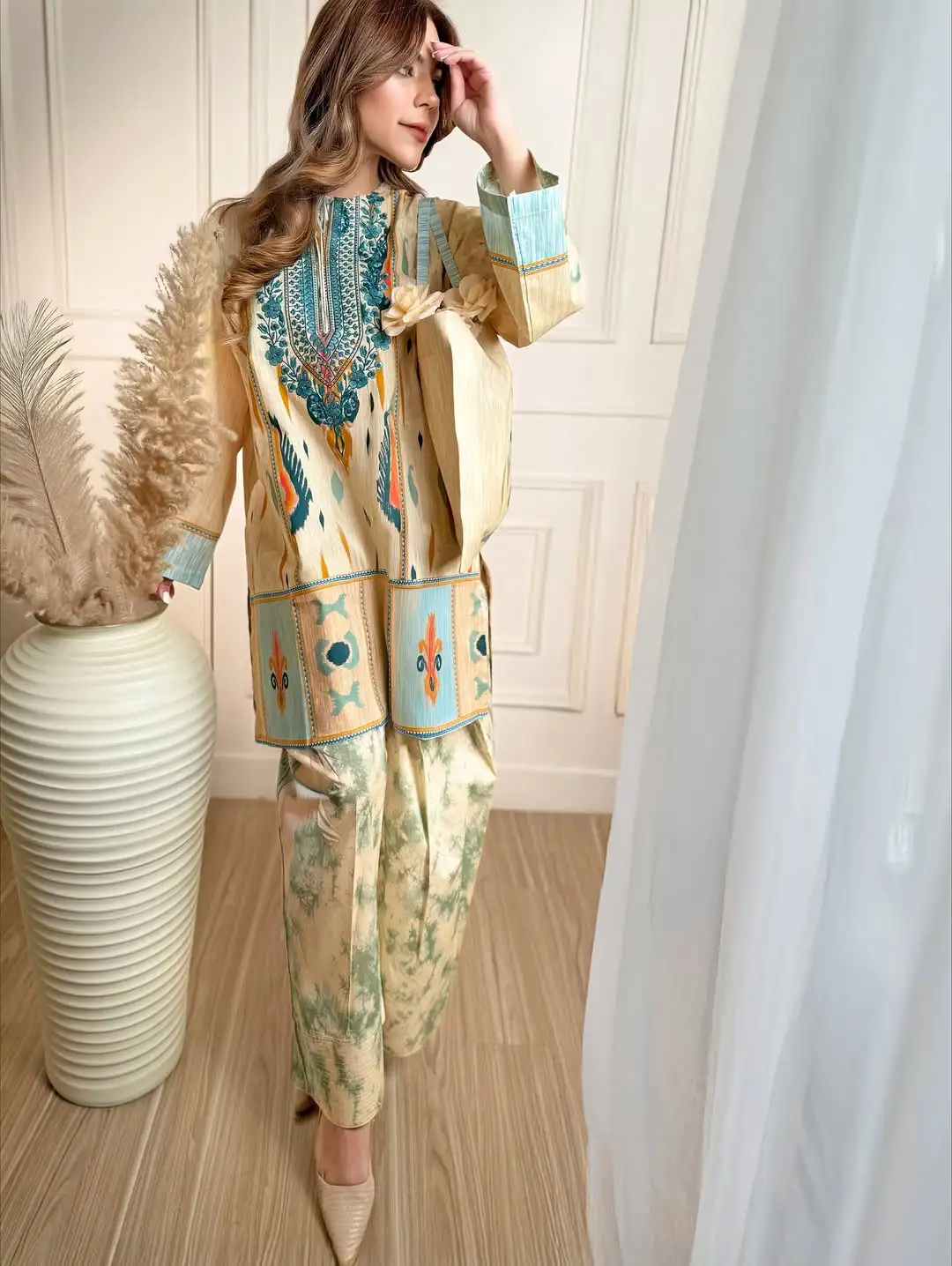 Step into timeless elegance with this exquisitely designed 2-piece set from Bongo Nari Luxury Printed Collection. Crafted with premium digital prints and elevated by delicate embroidery and lace detailing, this outfit perfectly balances sophistication and comfort. Ideal for festive occasions, casual gatherings, or refined everyday wear.