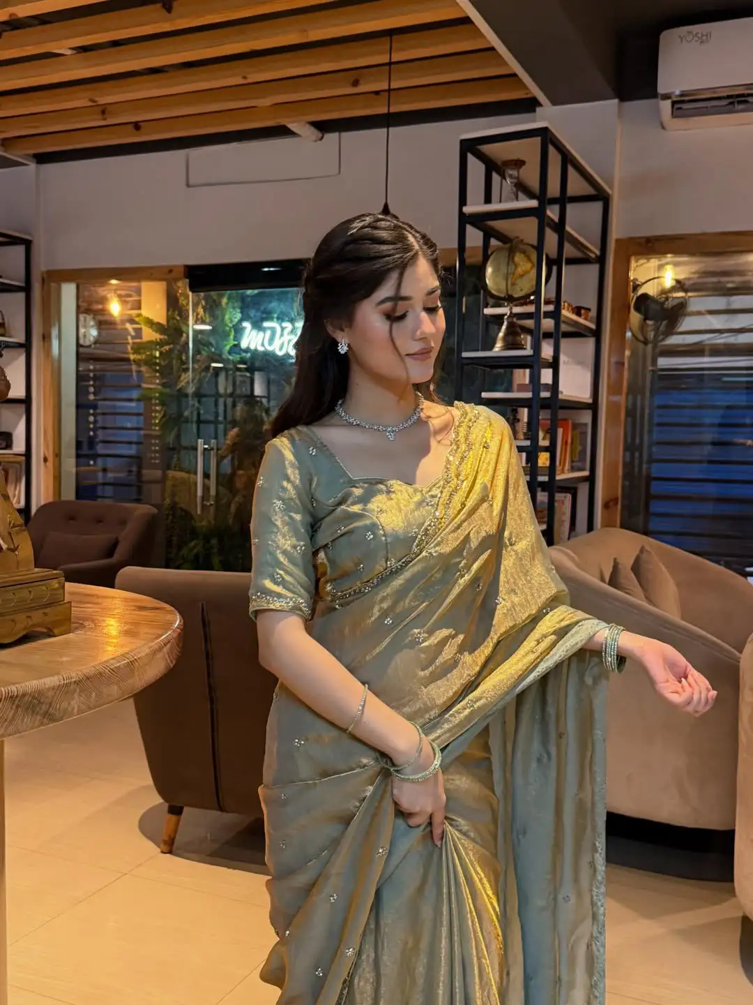 Gorgeous Afgani Silk Saree (Jharkan Stone Work)