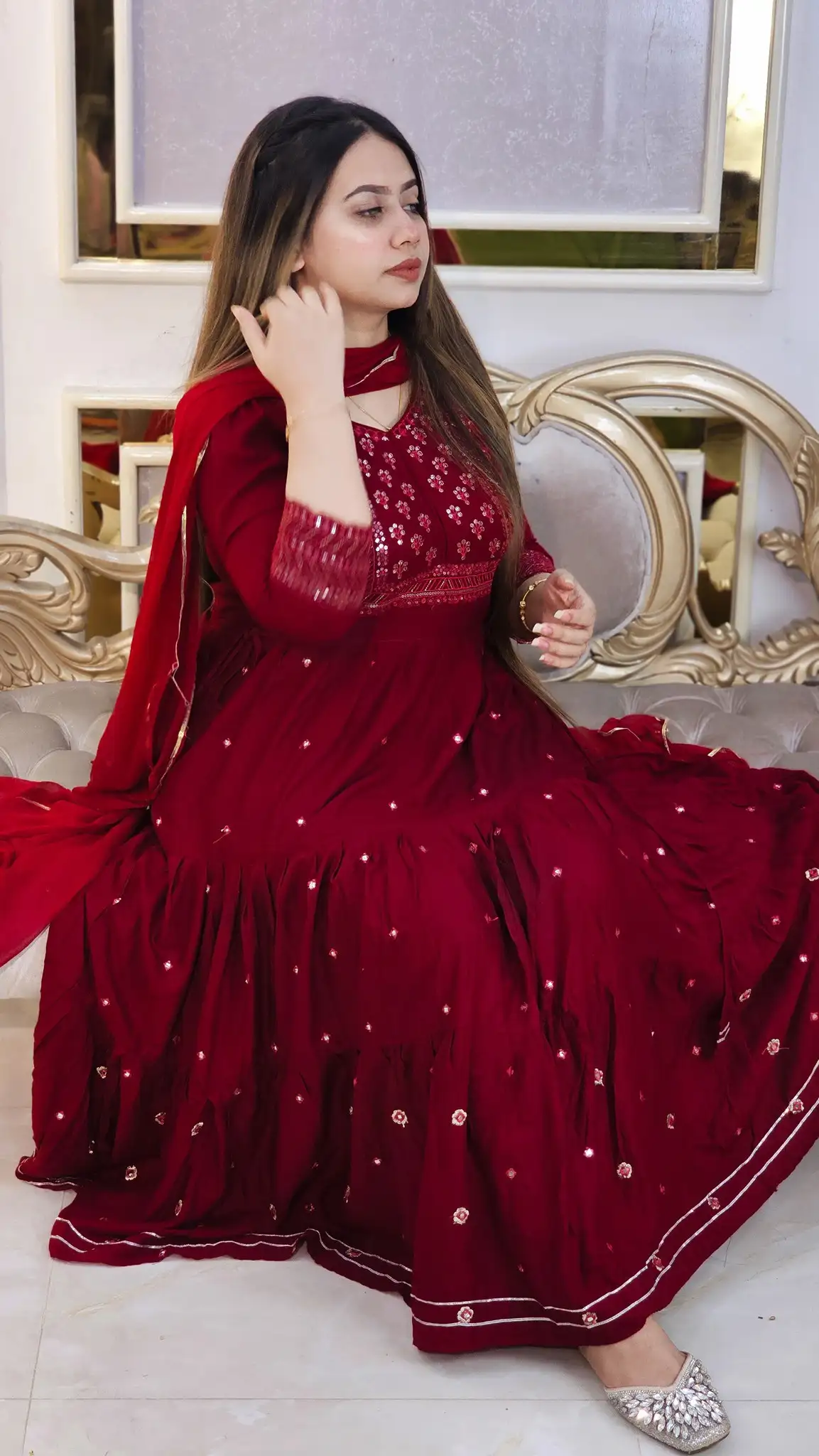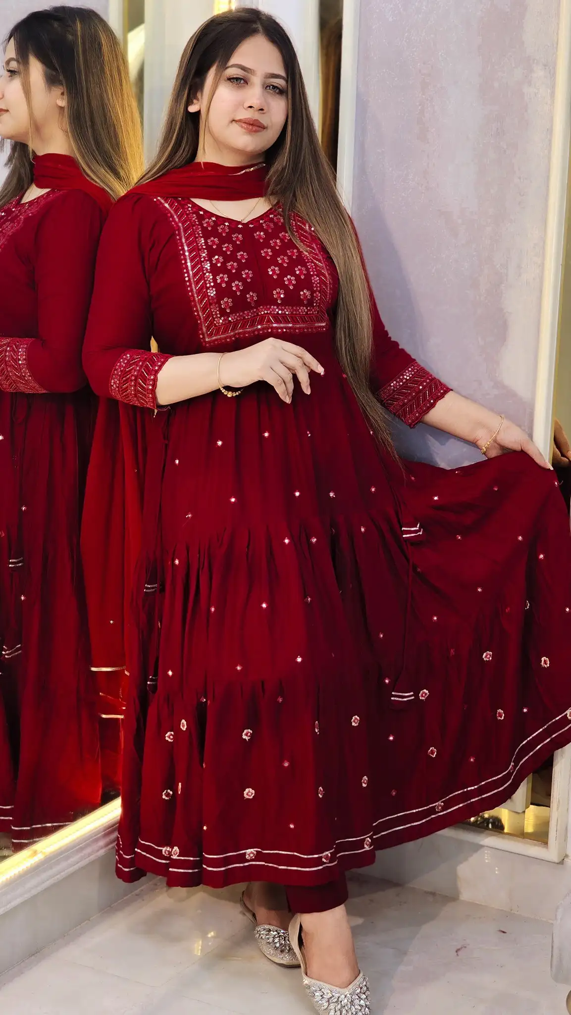 সফট ও কমফোর্টেবল China Viscose Cotton ফেব্রিকের উপর তৈরি এই Anarkoli Style Long Dress এখন সবার পছন্দের তালিকায়!